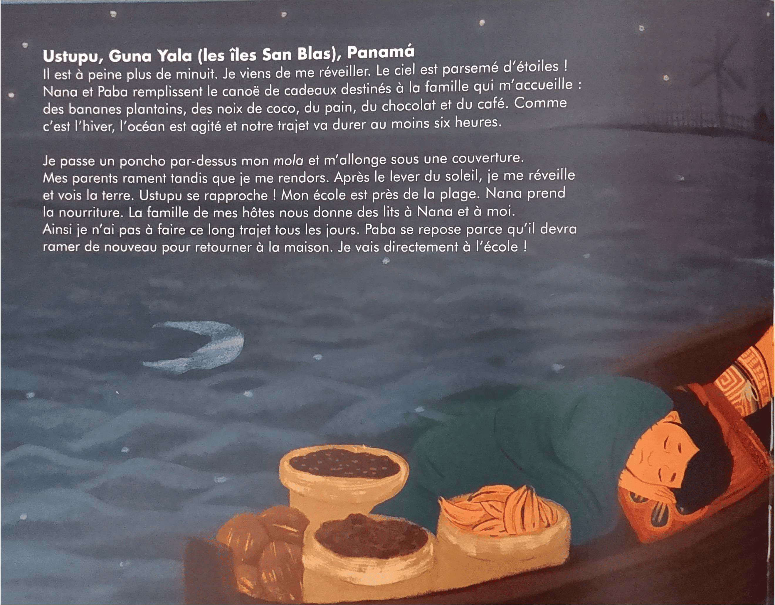 Partout dans le monde — du Népal au Japon, de l’Ukraine aux États-Unis — des enfants partent chaque matin à l’école, parfois d’une manière peu ordinaire : en pirogue, en tuk-tuk, à pied sur un sentier montagneux. Ce livre retrace treize de ces parcours, chacun illustrant une culture, un quotidien différent. Chaque récit est accompagné d’un petit texte documentaire qui explique non seulement comment ces écoliers vont à l’école, mais pourquoi l’école compte pour eux, dans leur pays.